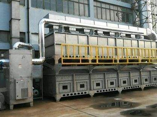 炭經(jīng)過吸附運行一段時間后達到飽和,啟動系統(tǒng)的脫附-催化燃燒過程,通過熱氣流將原來已經(jīng)吸附在炭表面的溶劑脫附出來(多床循環(huán)脫附),并經(jīng)過催化燃燒反應(yīng)轉(zhuǎn)化生成CO2和水蒸氣等無害物質(zhì),并放出熱量,反應(yīng)產(chǎn)生的熱量經(jīng)過熱交換部分回用到脫附加熱氣流中,當(dāng)脫附達到一定程度時放熱跟脫附加熱達到平衡,系統(tǒng)在不外加熱量的情況下完成脫附過程。